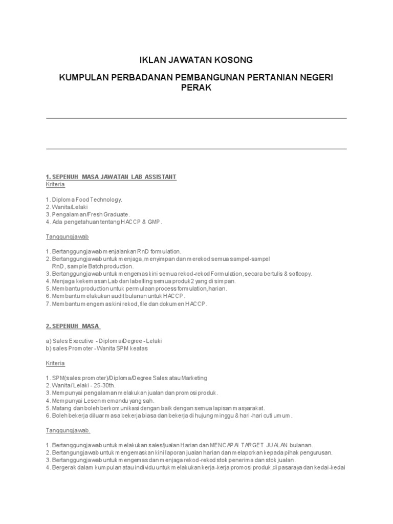 Jawatan Kosong Pppnp Perbadanan Pembangunan Pertanian Negeri Perak 23 Mac 2018 Jawatan Kosong Kerajaan Swasta Terkini Malaysia 2020 2021