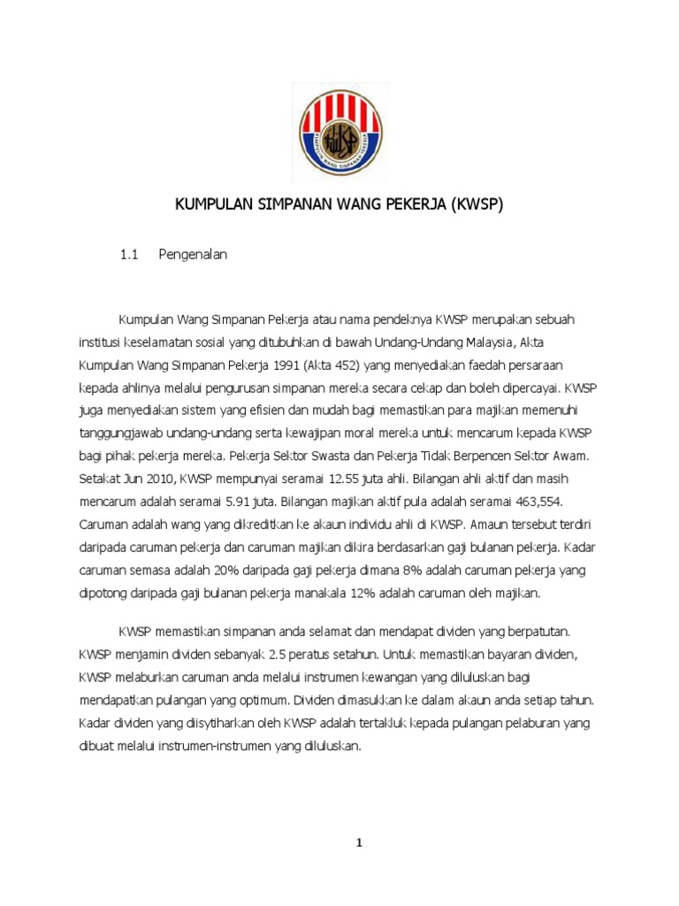 Kumpulan Simpanan Wang Pekerja Kwsp 1 1 Pengenalan