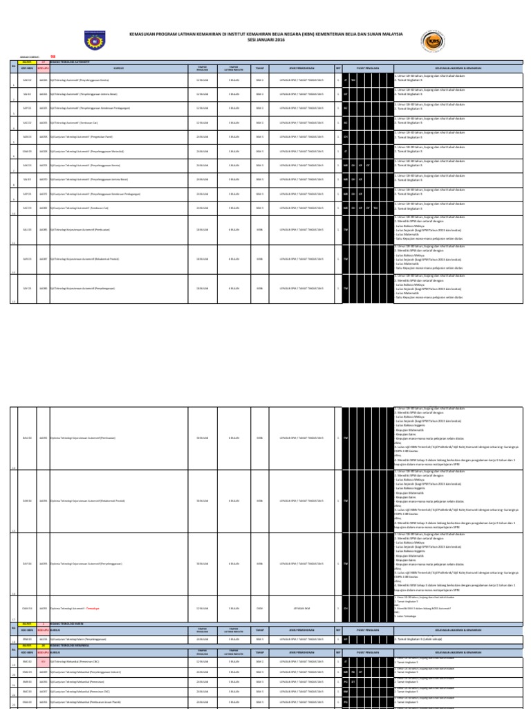 Senarai Ikbn Dan Iktbn Serta Kursus Yang Ditawarkan