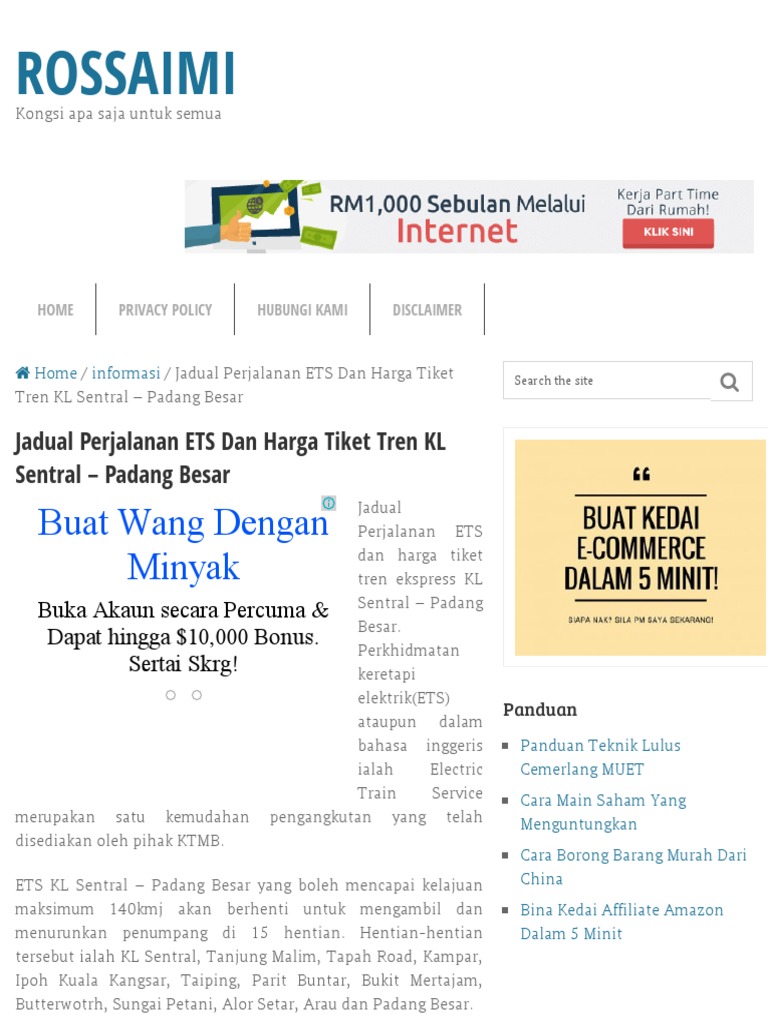 Jadual Perjalanan Ets Dan Harga Tiket Tren Kl Sentral Padang Besar Pdf