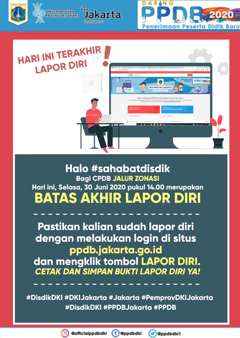 Ppdbdki On Twitter Halo Sahabatdisdik Selasa 30 Juni 2020 Adalah Hari Terakhir Lapor Diri Pastikan Sudah Lapor Diri Dengan Login Situs Https T Co Udbxd6rzfb Lalu Klik Tombol Lapor Diri Maksimal Pukul 14 00 Wib Jangan