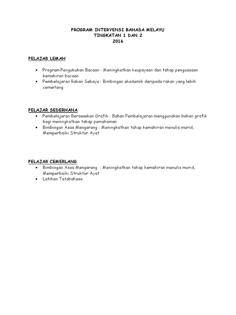 Program Intervensi Bahasa Melayu Ting 1 Dan 2