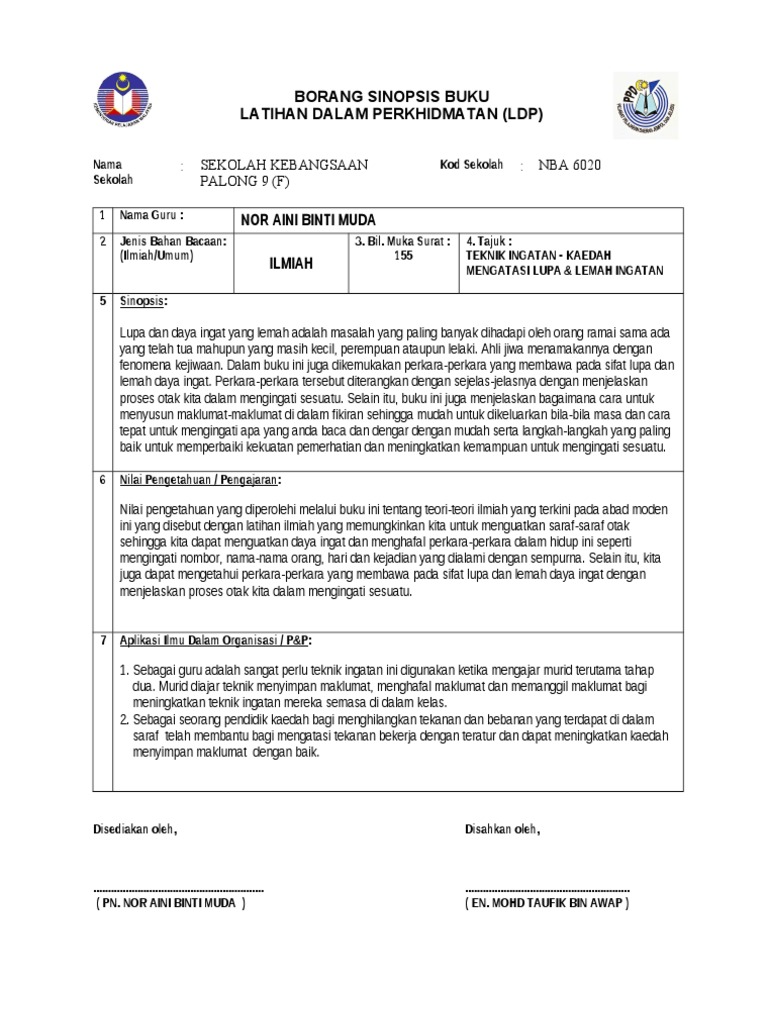 Borang Sinopsis Buku Latihan Dalam Perkhidmatan Ldp