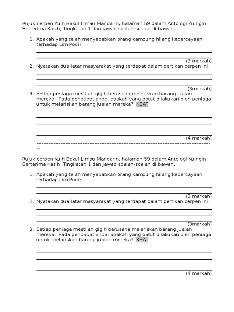 Contoh Soalan Komsas Tingkatan 3 Pt3 Soalan By