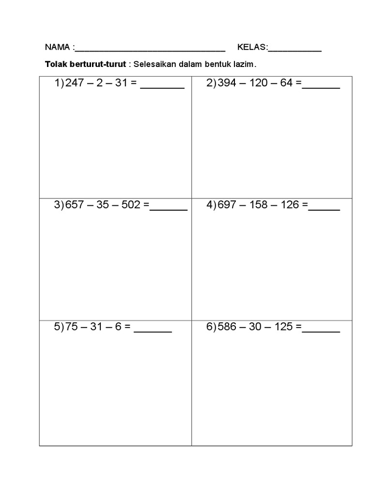 Tolak Dan Tambah Dalam Bentuk Lazim Latihan Cuti Sekolah Cikgu Joe Sekolah Asli