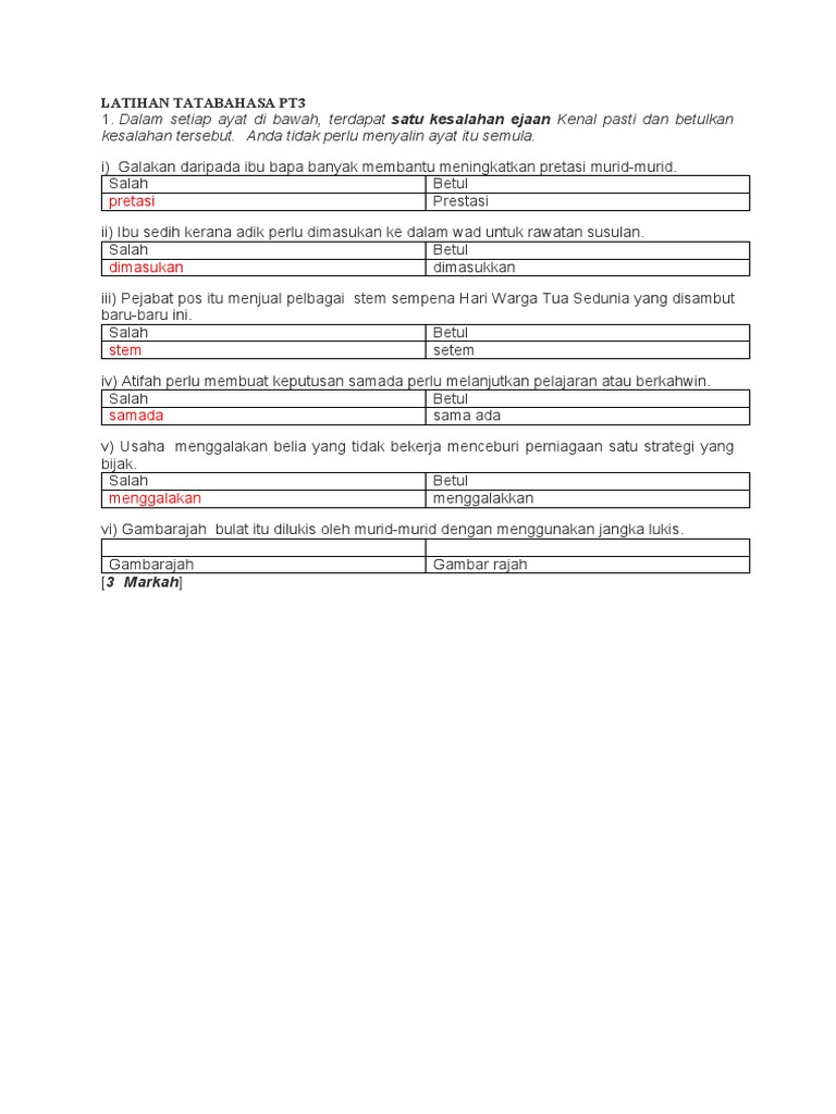 Contoh Soalan Kesalahan Ejaan Pt3 Soalan Bg