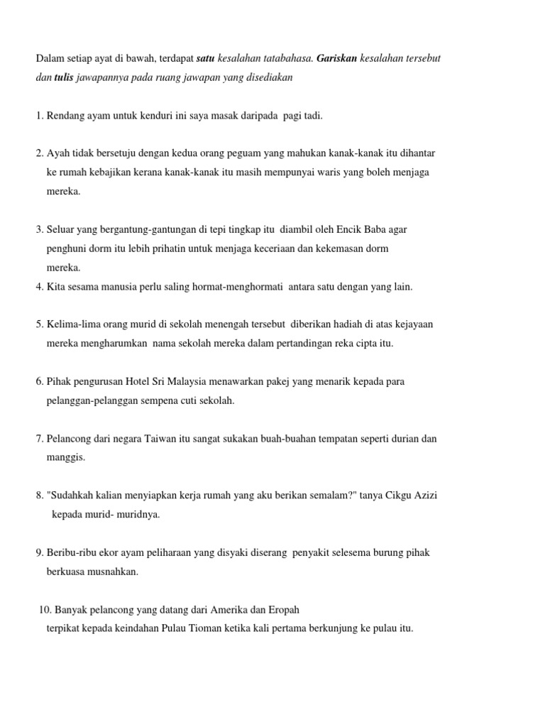 Contoh Soalan Kesalahan Tatabahasa Pt3 Soalan Bg