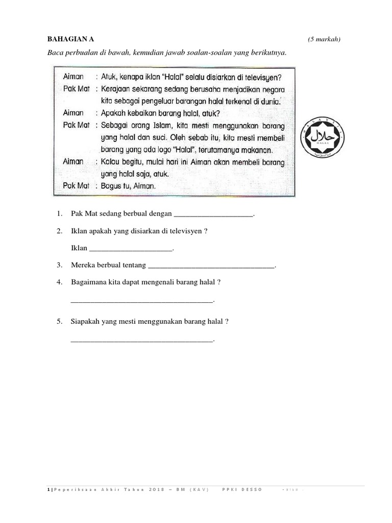 Soalan Peperiksaan Bahasa Melayu Kssm Ppki 2018 Tingkatan 1