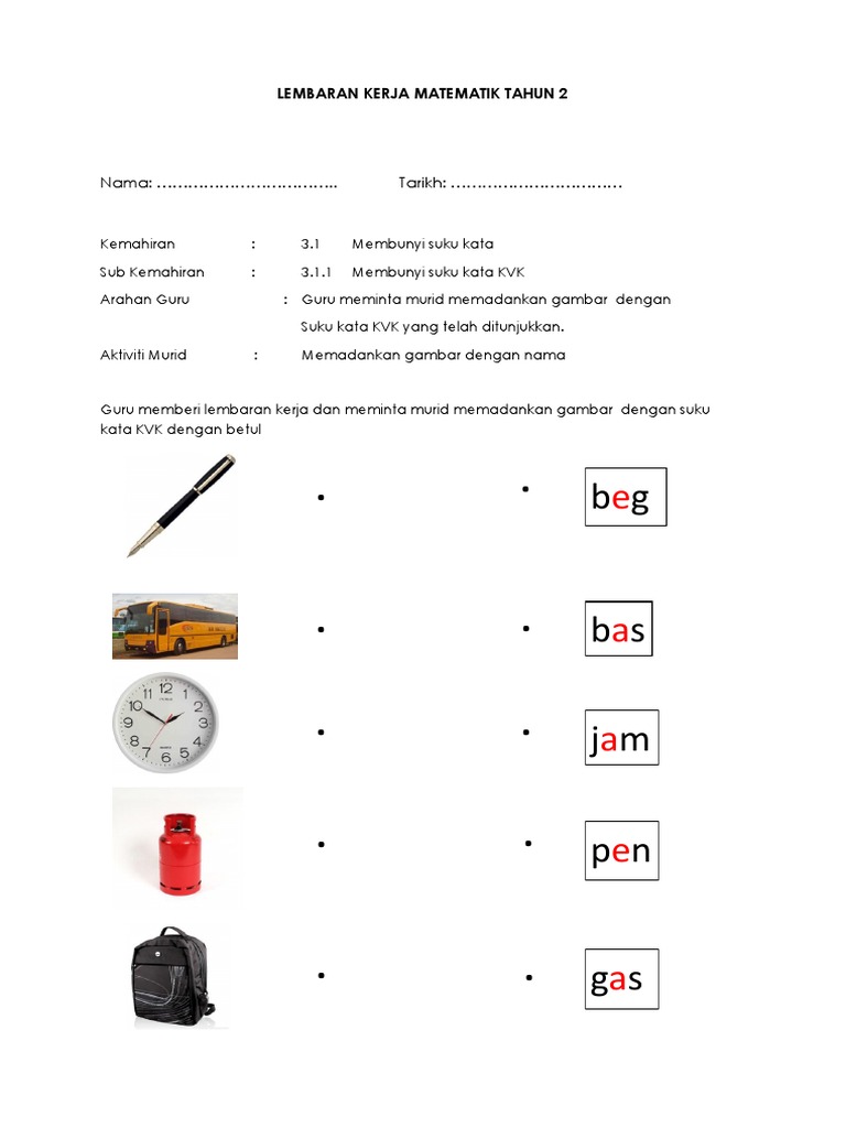 Bahasa Melayu Pendidikan Khas Kssr Tahun 3 Suku Kata Kvk Lessons Tes Teach