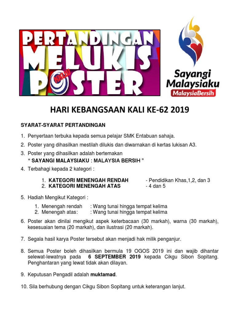 Hari Kebangsaan Kali Ke 62 2019 Syarat Syarat Pertandingan