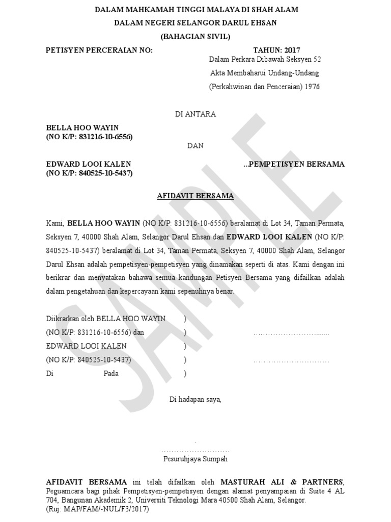 Joint Petition Afidavit Bersama