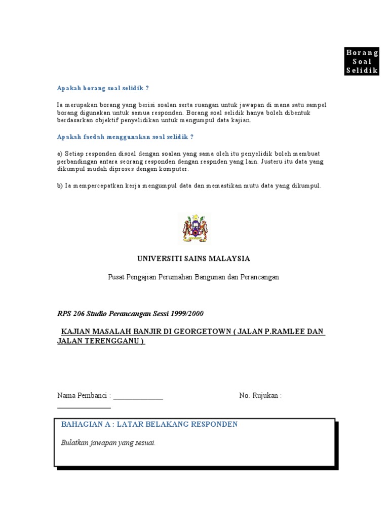 Maksud Borang Soal Selidik