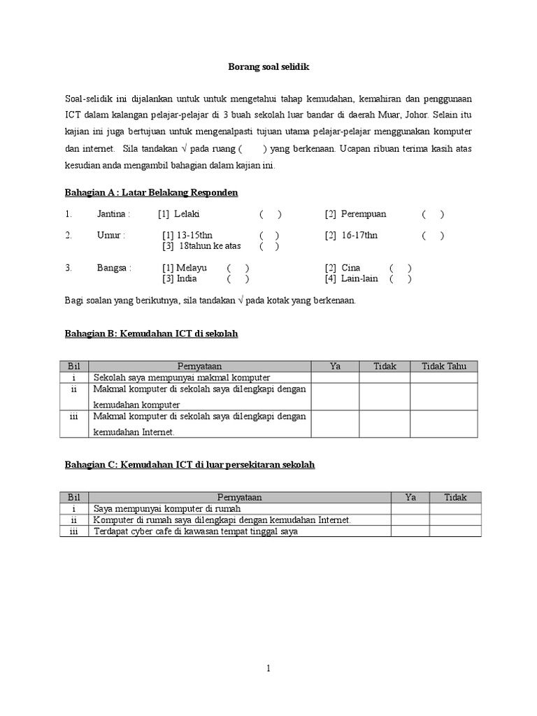 Contoh Borang Soal Selidik Tesis Contoh Qos Cute766