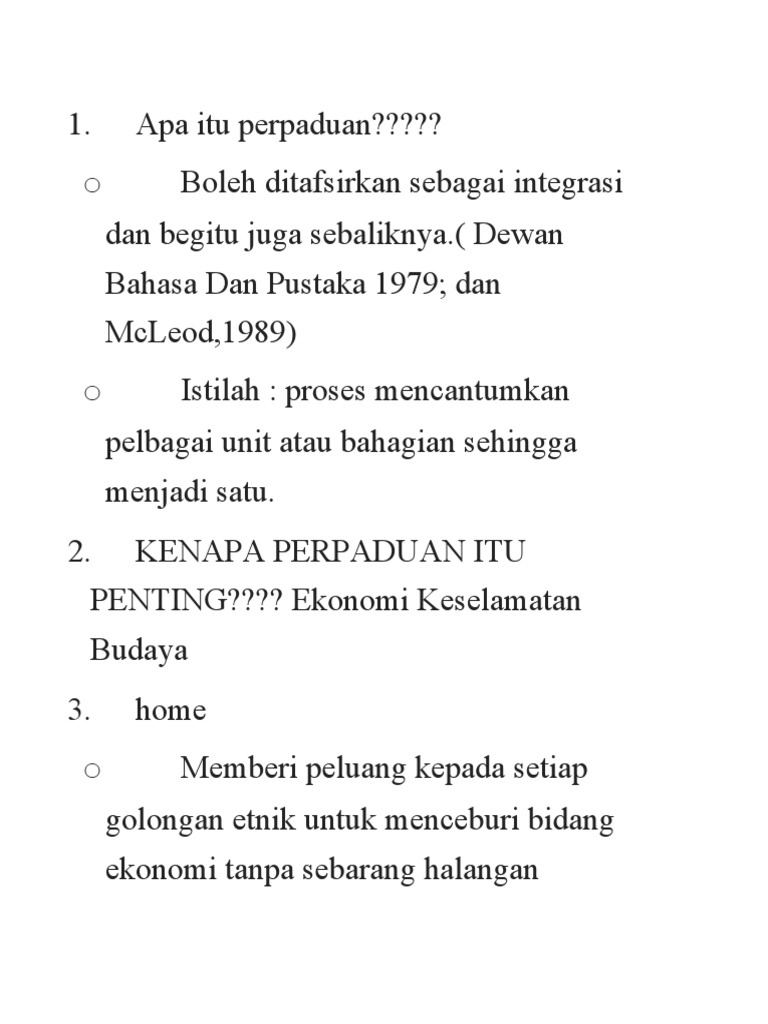 Hubungan Etnik Konsep Perpaduan Integrasi Hub Etnik