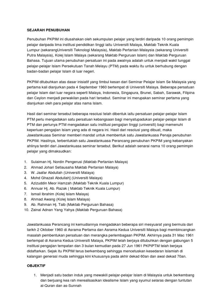 Sejarah Penubuhan Pkpim
