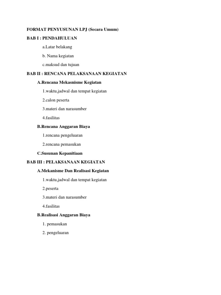 Format Penyusunan Laporan Pertanggungjawaban Lpj Kegiatan