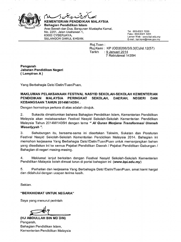 Surat Pemakluman Fnss Kpm 2014