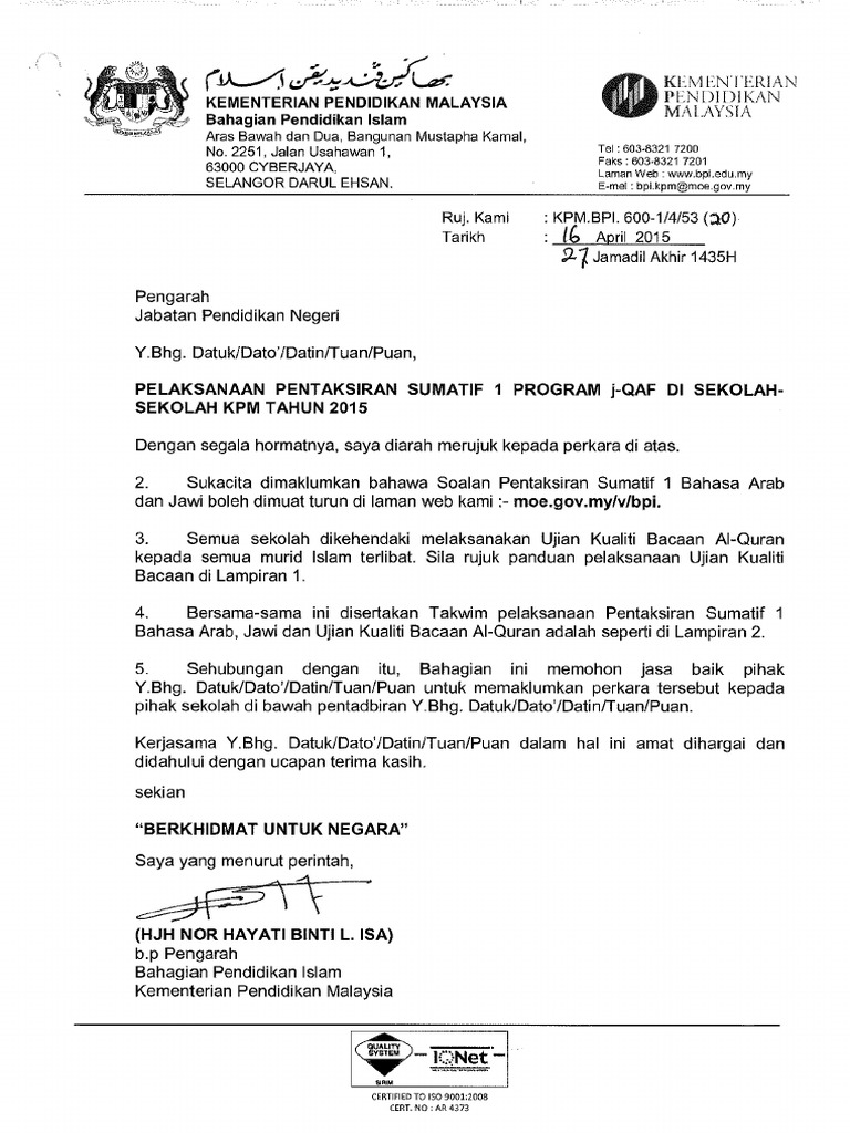 Surat Sumatif 1 2015