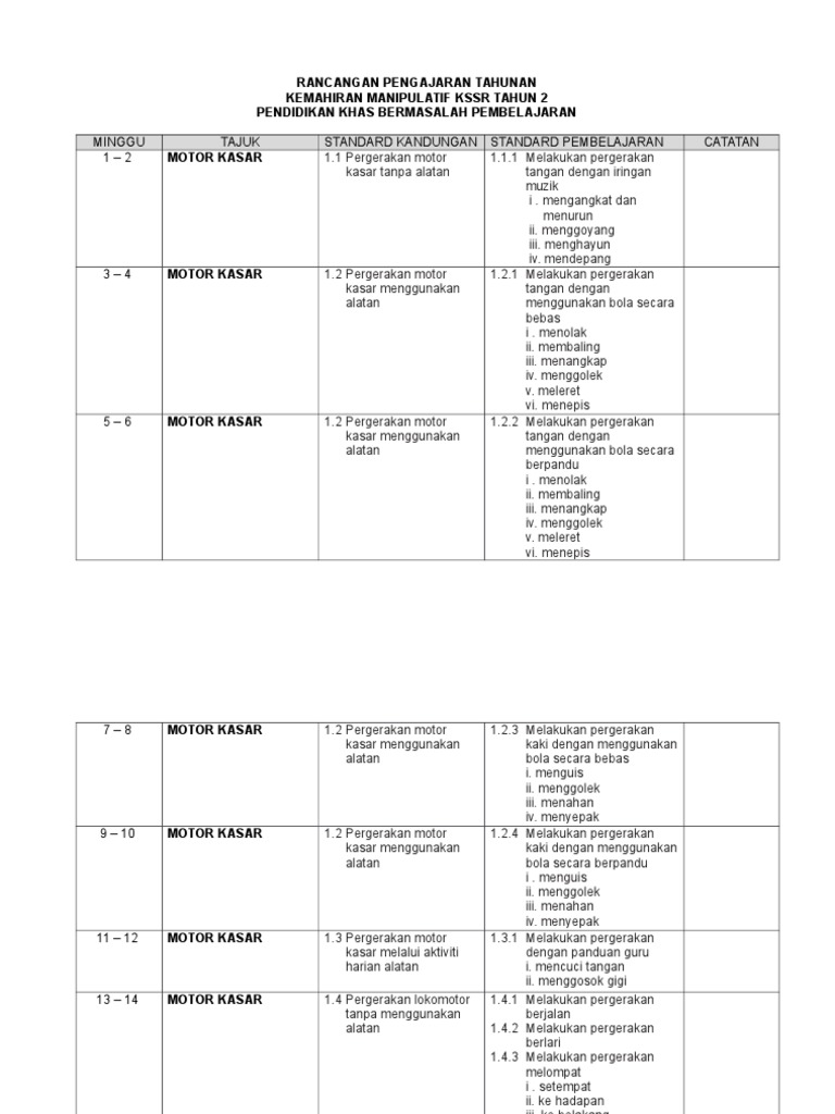 Senarai Semak Kemahiran Manipulatif Pendidikan Khas Tahun 2