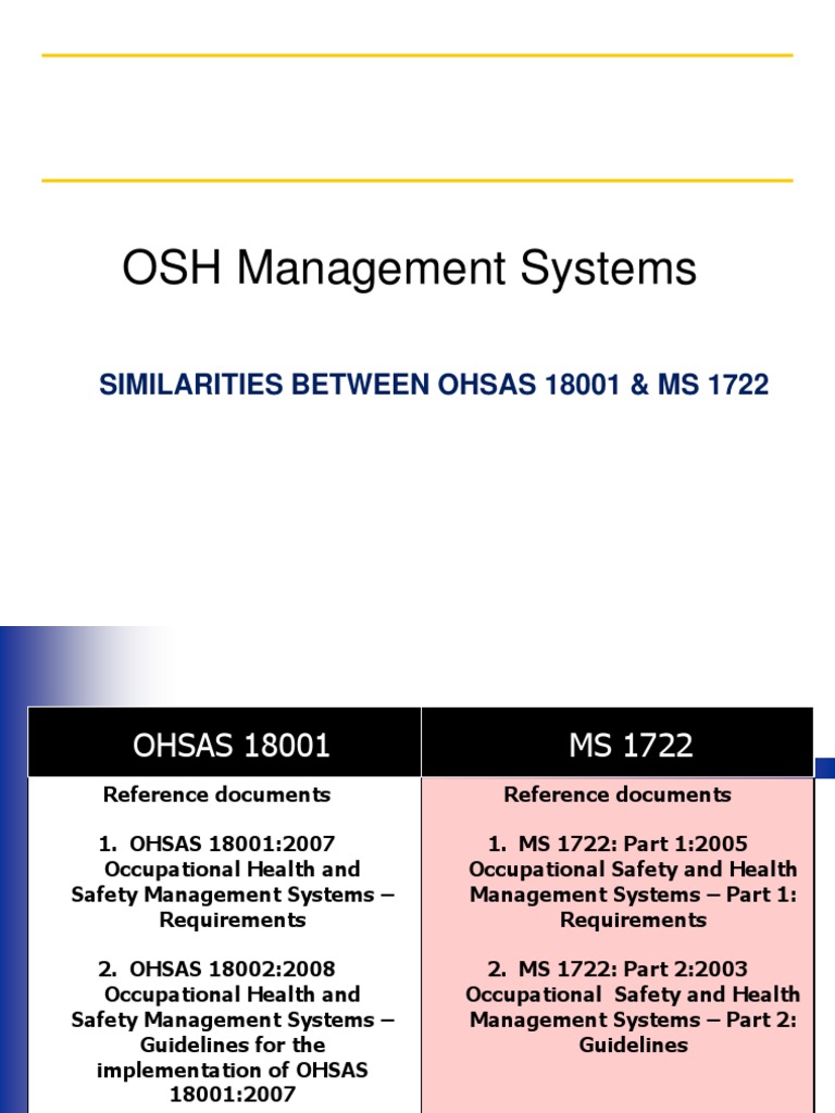 Pdf Occupational Safety And Health Management System In Malaysia Comparison Between Ohsas 18001 2007 And Ms 1722 2011