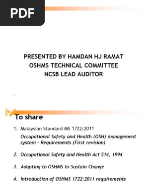 2 Introduction On Ms 1722 2011 Occupational Safety And Health Safety