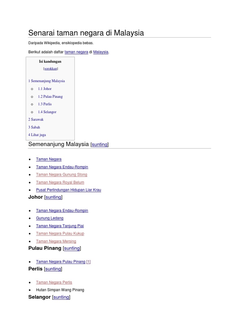 Senarai Taman Negara Di Malaysia Sumber Wikipedia