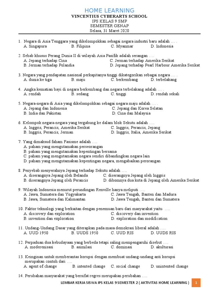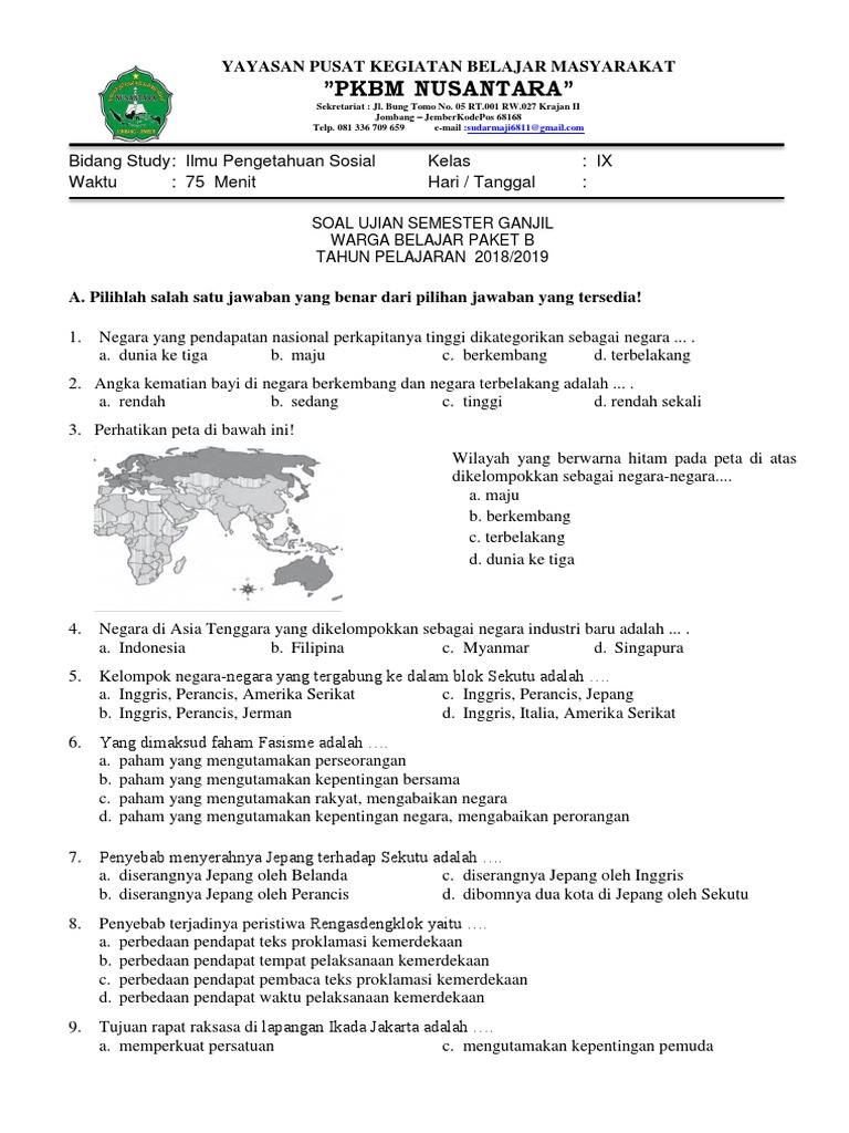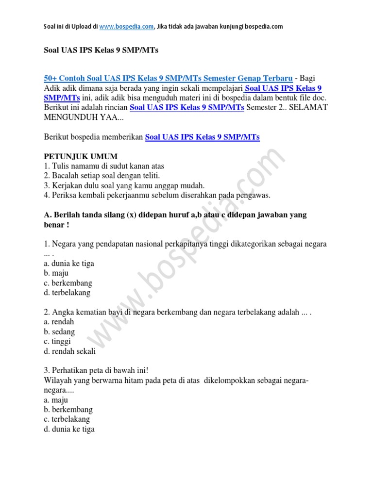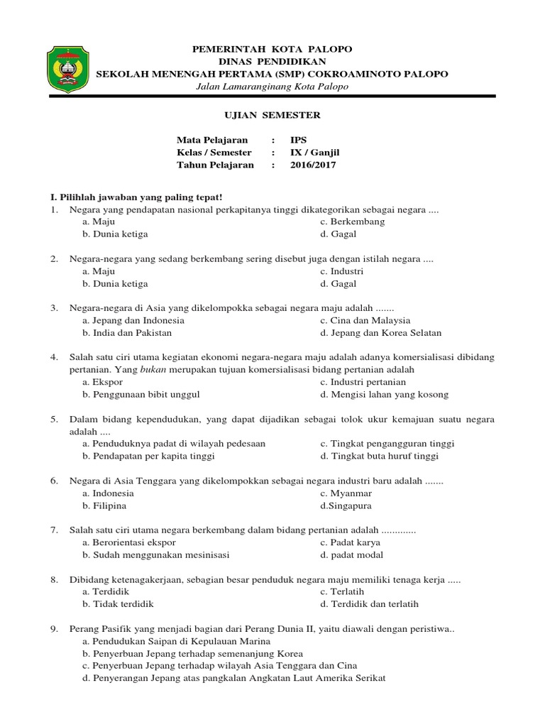50 Contoh Soal Uas Ips Kelas 9 Smp Mts Semester Genap Docx