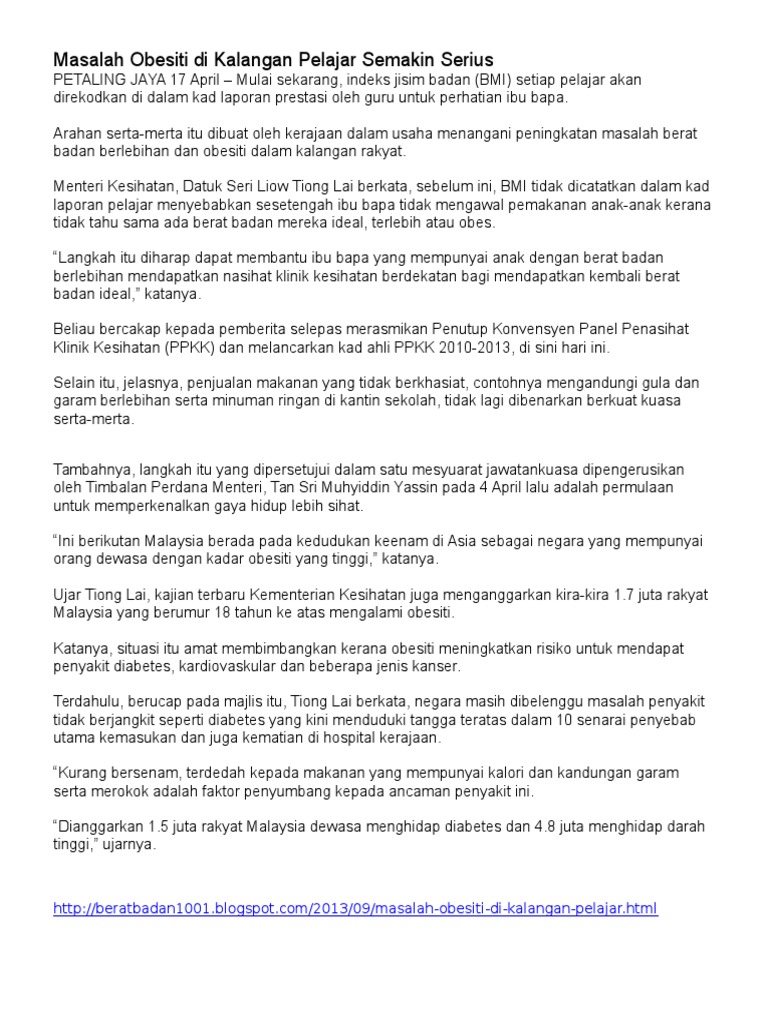 Doc Obesiti Dalam Kalangan Pelajar Kalobenor Nantidemertau Academia Edu