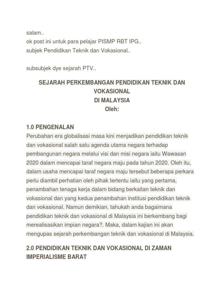 Pendidikan Teknik Dan Vokasional Sinopsis