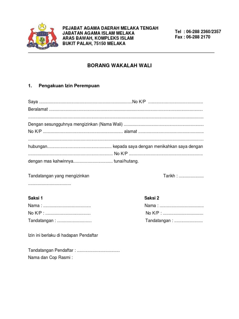 Borang Wakalah Wali Jaim