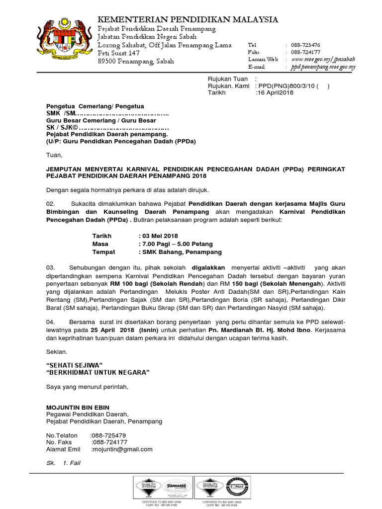 Surat Penyertaan Karnival Ppda