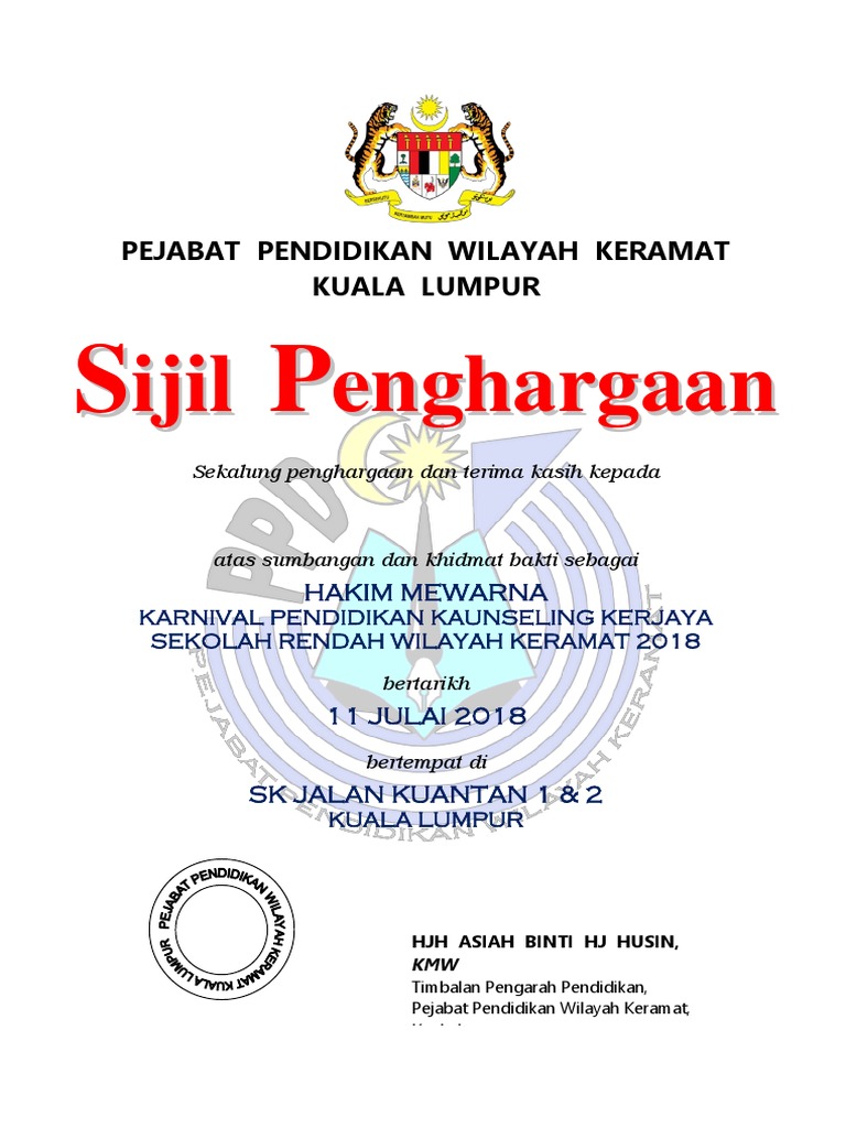 Sijil Penghargaan Karnival 2018 Hakimpemenang