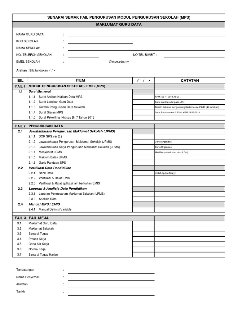 Senarai Semak Fail Pengurusan Modul Pengurusan Sekolah Mps Maklumat Guru Data
