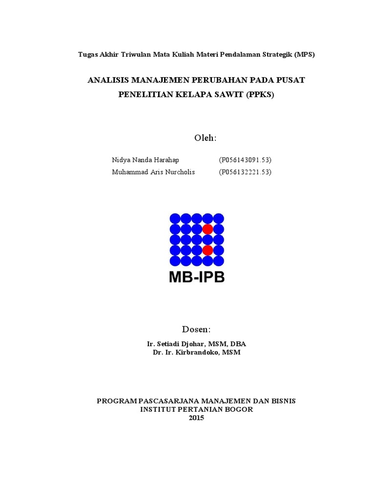 Analisis Manajemen Perubahan Pada Pusat Penelitian Kelapa Sawit Ppks
