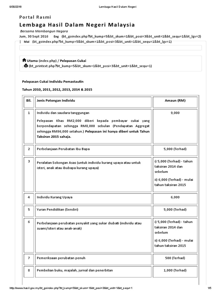 Senarai Pelepasan Cukai Pendapatan 2016 Untuk E Filing 2017 Jom Urus Duit