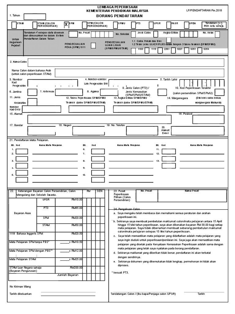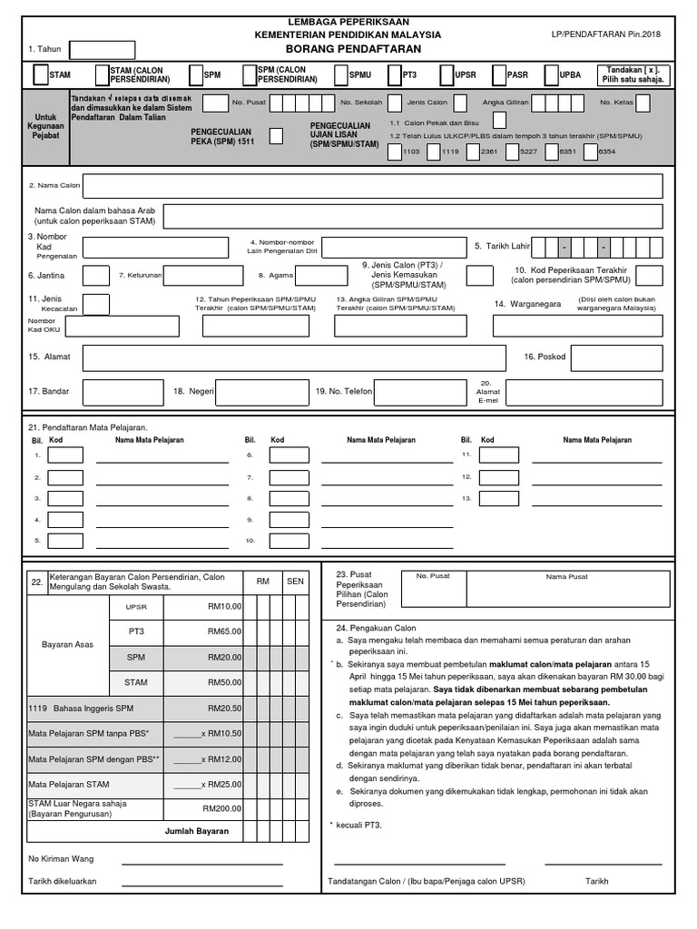 Borang Pendaftaran Spm Versi 2018