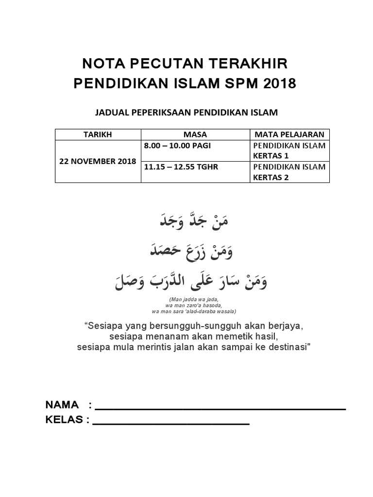 Nota Pecutan Terakhir Pendidikan Islam Spm 2018