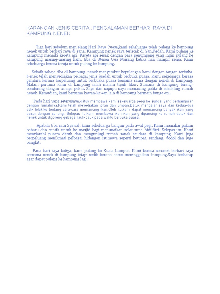 Karangan Bahasa Melayu Karangan Jenis Cerita Pengalaman Berhari Raya Di Kampung Nenek