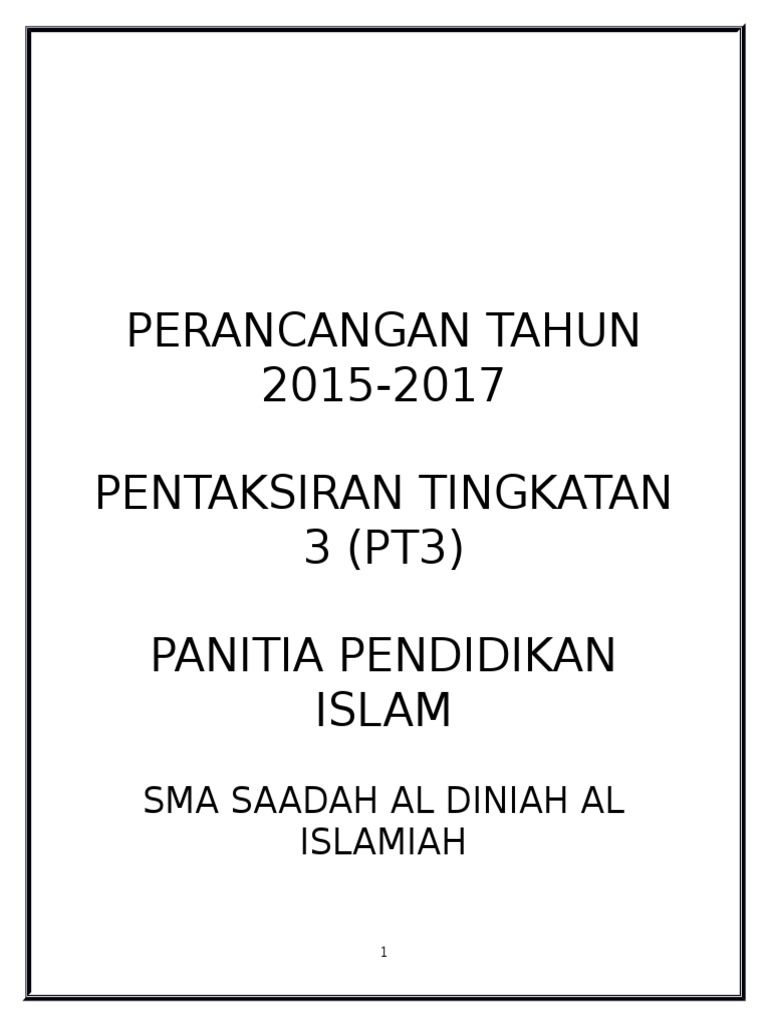 Perancangan Tahun 2015 2017 Pentaksiran Tingkatan 3 Pt3 Panitia Pendidikan Islam