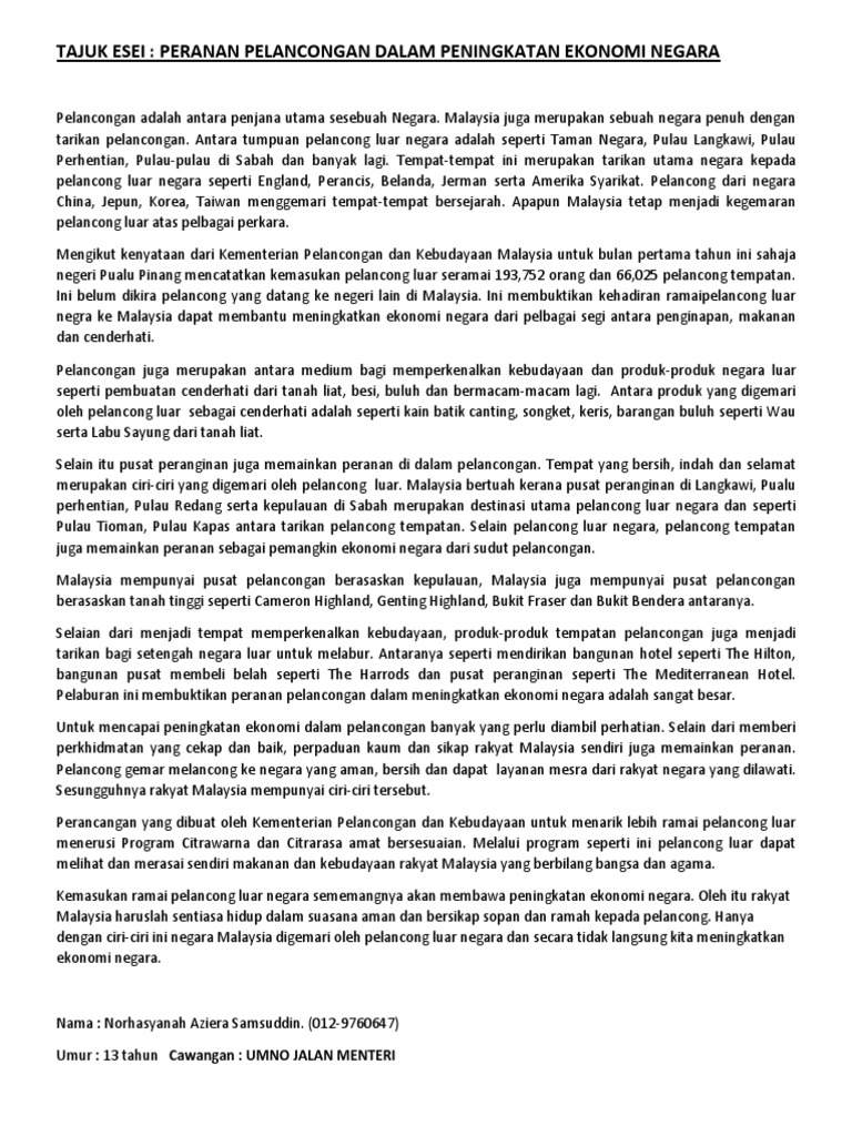 Peranan Pelancongan Dalam Peningkatan Ekonomi Negara