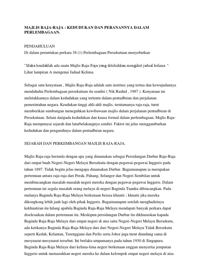 Majlis Raja Raja Kedudukan Dan Peranannya Dalam Perlembagaan