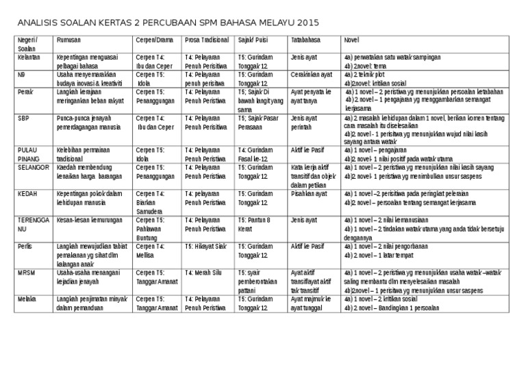 Analisis Soalan Kertas 2 Percubaan Spm Bahasa Melayu 2015