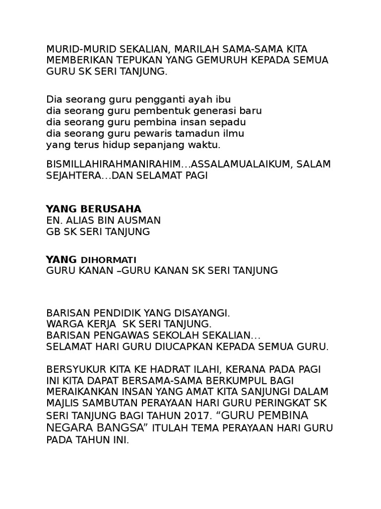 Kumpulan Unik Teks Ucapan Ketua Pengawas Sempena Hari Guru 2019 Informasi Masa Kini