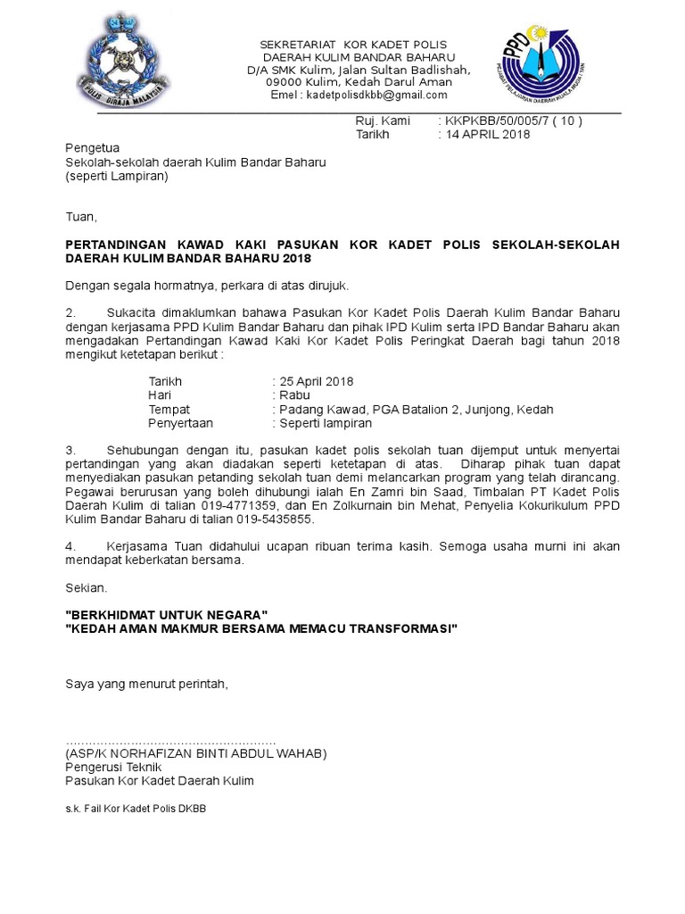 1 Surat Makluman Pertandingan Kawad Kaki Kdpo 2018