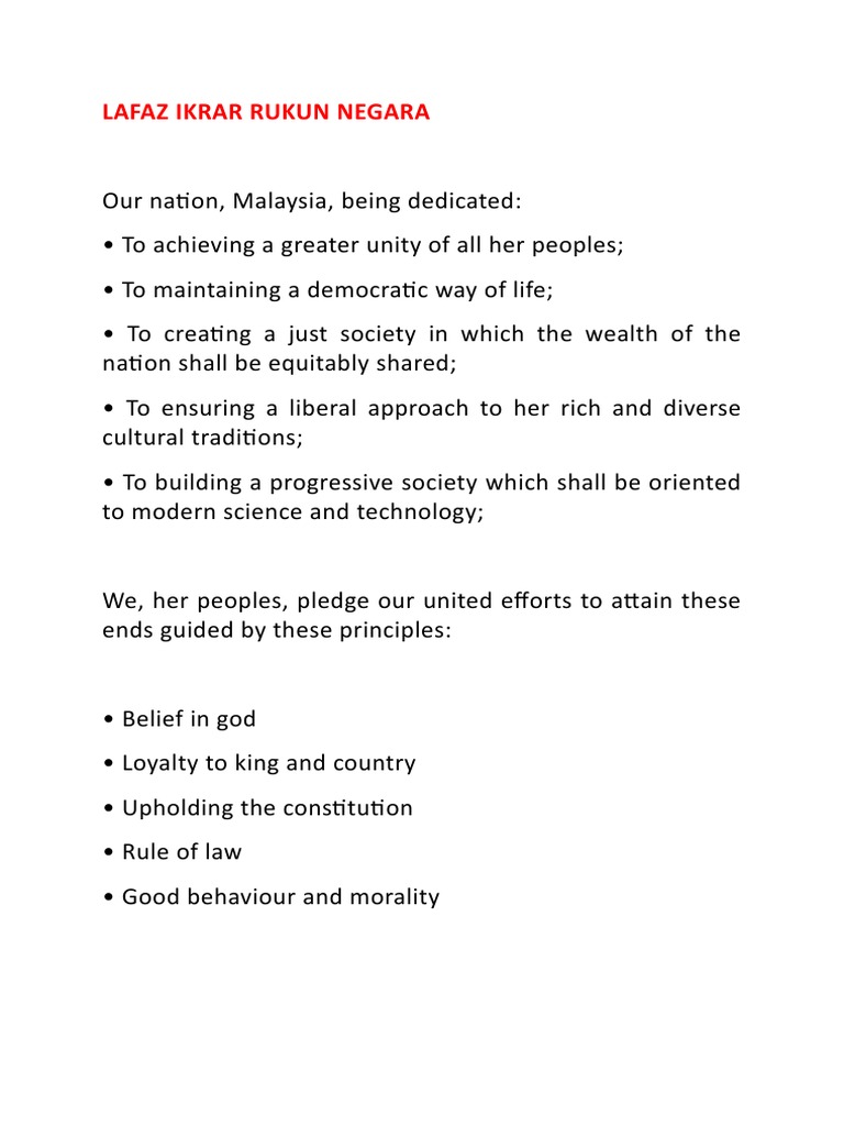 Say Your Rukun Negara In English
