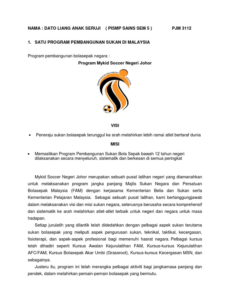 Program Pembangunan Bola Sepak Negara Laporan Pemantauan Dan Sesi Latihan Program Bolasepak Negara
