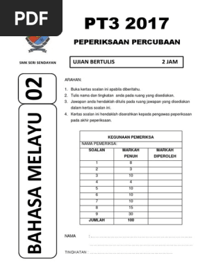 Contoh Soalan Percubaan Bahasa Melayu Pt3 Tahun Ini